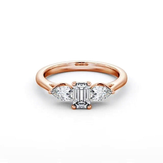 Trilogy Emerald and Pear Diamond Ring | 18K Solid Gold