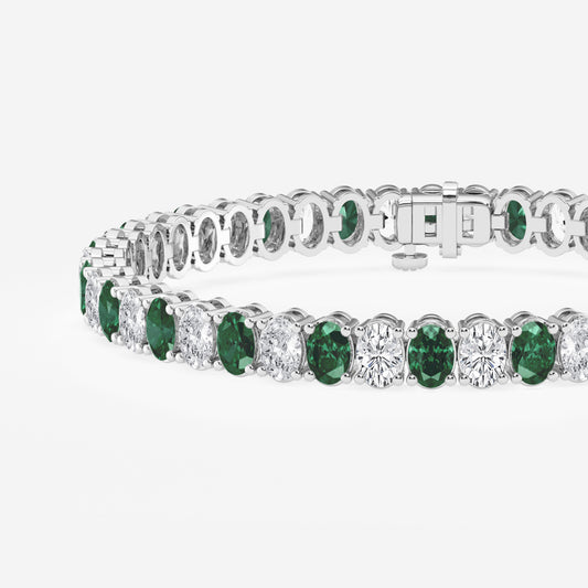Emerald Gemstone And Oval Diamond Bracelet