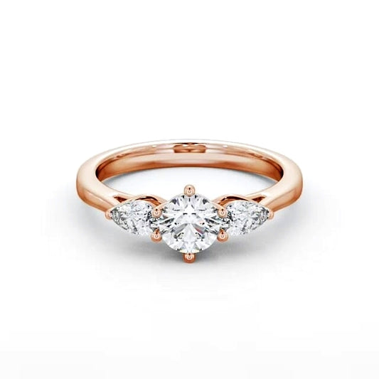 Trilogy Round and Pear Diamond Ring | 18K Solid Gold