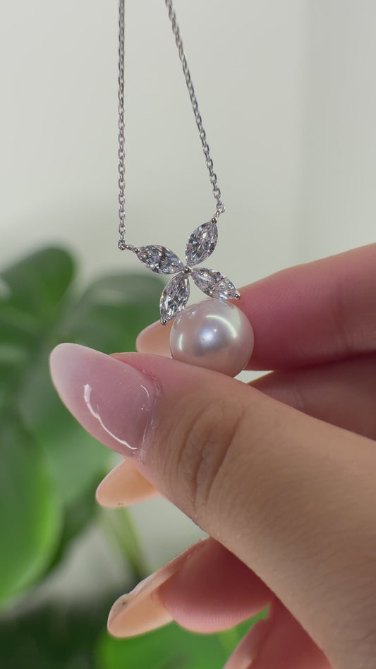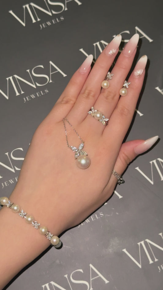 Floral Diamond & Freshwater Pearl Tennis Bracelet