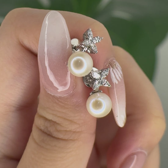 Fresh water Pearl and Marquise Diamond Earrings combine classic beauty with contemporary sparkle. Each earring showcases a freshwater pearl paired with marquise-cut diamonds for a refined, feminine finish. Expertly crafted in 18K gold, this pair delivers effortless elegance for any occasion.