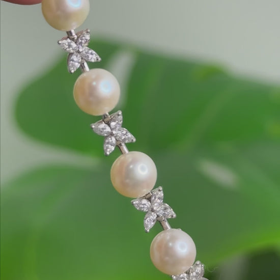 Floral Diamond & Freshwater Pearl Tennis Bracelet